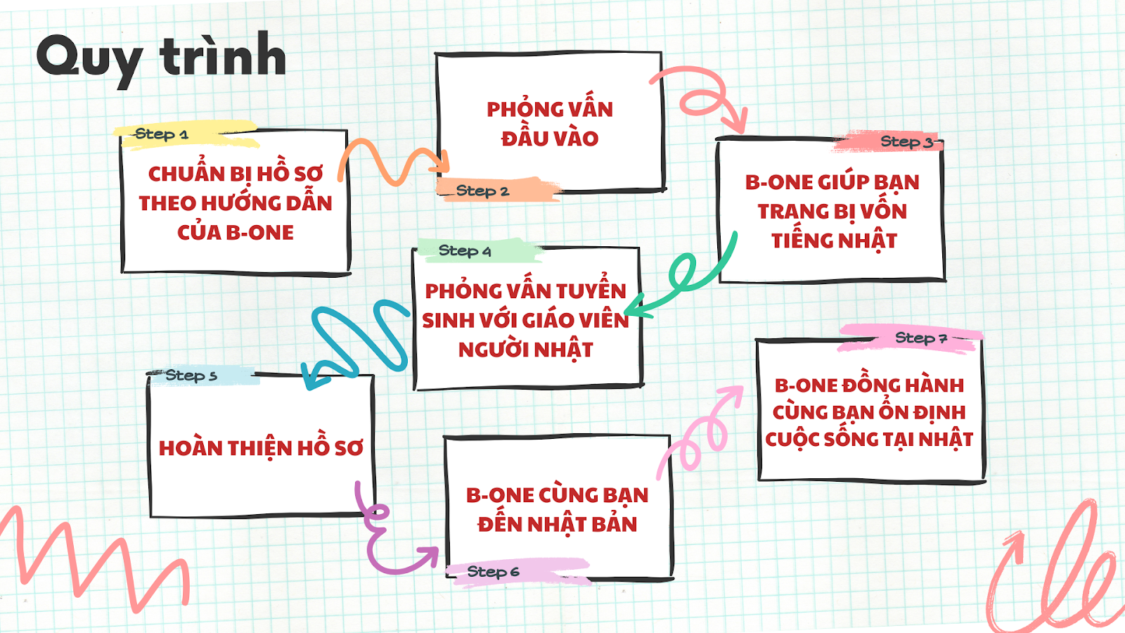 B-One triển khai tuyển sinh và xử lí hồ sơ theo quy trình thống nhất, chuyên nghiệp, hồ sơ sẽ do văn phòng B-One tại Nhật trực tiếp xử lí, vì vậy tỉ lệ đạt visa gần như là tuyệt đối và bạn không phải lo lắng về việc thiếu giấy tờ hay trượt visa.